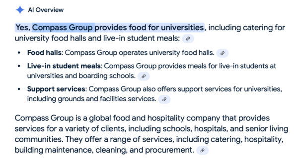 …I asked AI if Compass Group provided food for University live-in meals and it said yes…