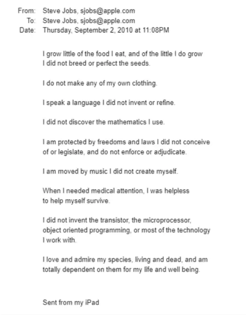 For those rich pricks screaming they are self made and fuck us for wanting a slice of their bread to properly fund society, let’s remember the email Steve Jobs sent to himself before he died…