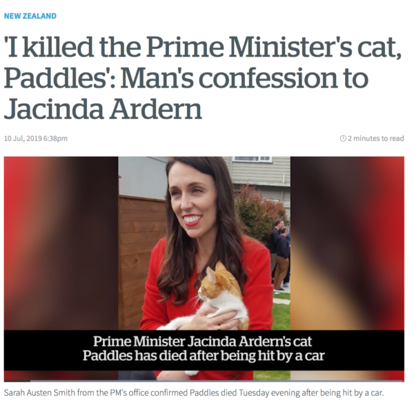 It’s funny that the killing of the PMs cat gains more news headlines than the revelation that the NZDF showed politicians doctored footage