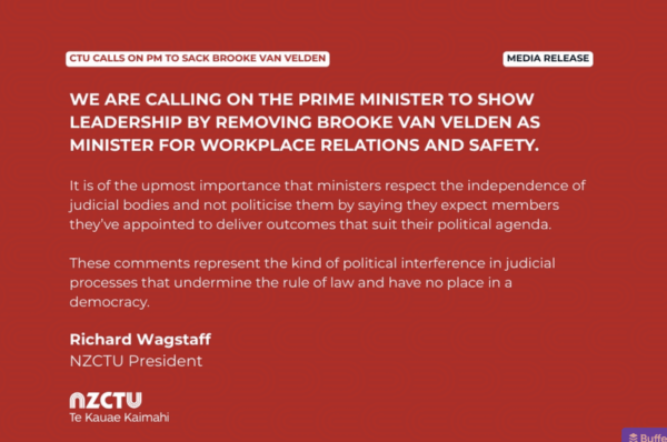 Then we have The Minister for Handmaid’s , Brooke Van Velden who decided she can just tell the Employment Relations Authority how she expects them to rule…