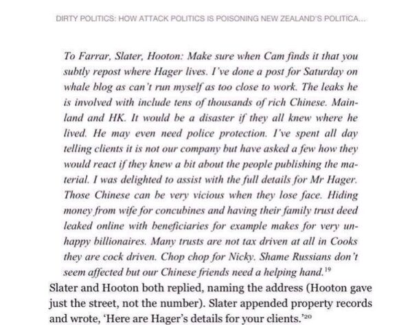 7. It certainly comes across that Judith Collins and co would be, and quoting one of John Key’s pet words, ‘comfortable’ with having Nicky Hager dead.