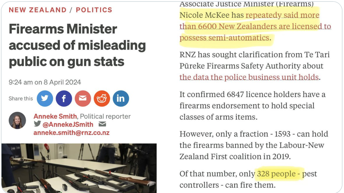 2. I find it fascinating that of the 1,593 people that potentially have these assault rifles only 328 – Pest Controllers are allowed to fire them. I have no problem with them being used in a professional manner but why would over a 1,000 people own a gun they can’t use? Is this a form of gun worship? To me as a retired farmer my guns – a bolt action 22 and a shotgun were simply tools for euthanasia and pest control. This minister is a real worry.