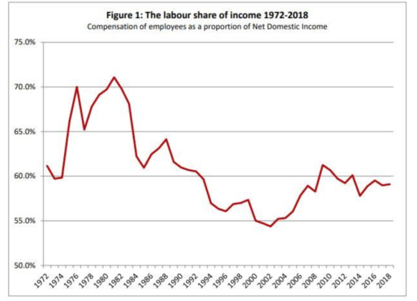 The economist for the Council of Trade Unions Bill Rosenberg has produced some revealing data about the resumption of the declining share of labour income in the New Zealand economy in the most recent CTU economic Bulletin.