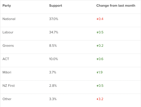 I think the answer to why that is, is Luxon is unlikeable and has been invisible lately, the rest of his party are creeps and National has trotted out their age-old unaffordable tax cut bribe to rich pricks that can only mean health will get even worse. And we all know National are as responsible as their slightly more woke twin, Labour, for the god-awful mess it is in. So voters are going cold on National but not exactly embracing Labour either.
