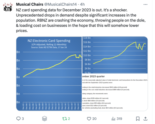 China’s feeble economic data will impact NZ negatively and with looming geopolitical shockwaves all primed to go off before Trump’s dreaded re-election in November, we are going to face economic dire straights combined with dangerous levels of social dislocation and civil disorder.