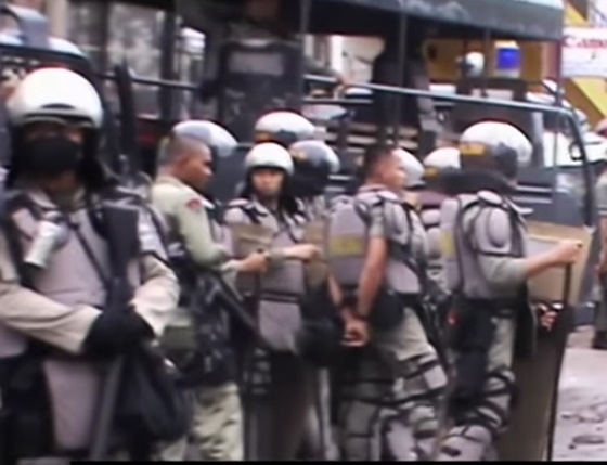 Indonesian special police in action against Papuan protesters — still from Cyril Payen’s documentary.