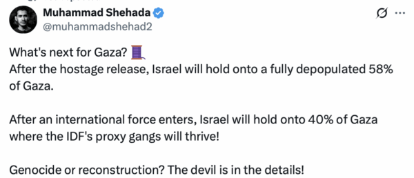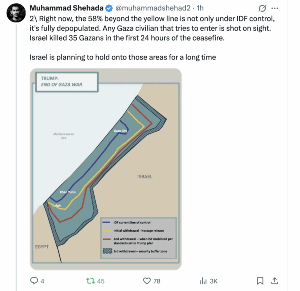 I believe the millisecond Israel gets their hostages back, a plethora of insidious means of continuing the war against Gaza’s will erupt and Trump won’t care because the only reason he was forcing Netanyahu to the cease fire table was because he thought it would win him the Nobel Peace Prize.