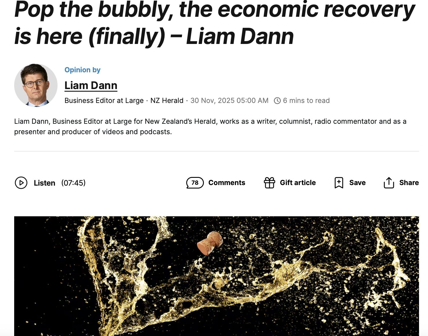 Pop the bubbly, the economic recovery is here (finally) – Liam Dann