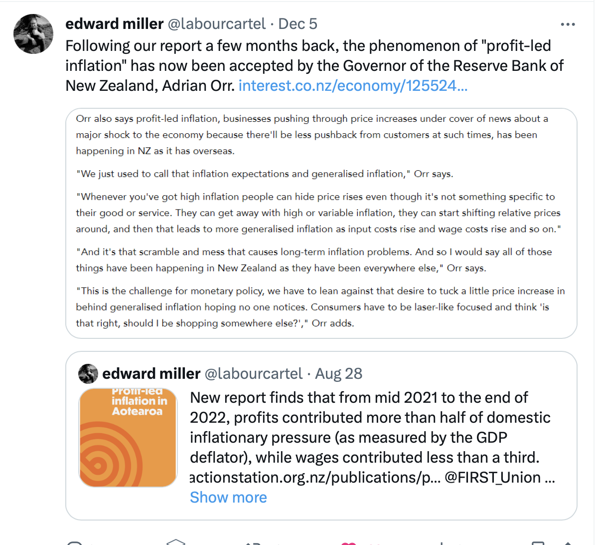 When Orr had a obligation to unemployment he was predicting 30 000 unemployed, now they don’t have to care about unemployment that number could explode which is outrageous when you consider so much of the inflation we are seeing is actually being driven by greedy corporate margins…