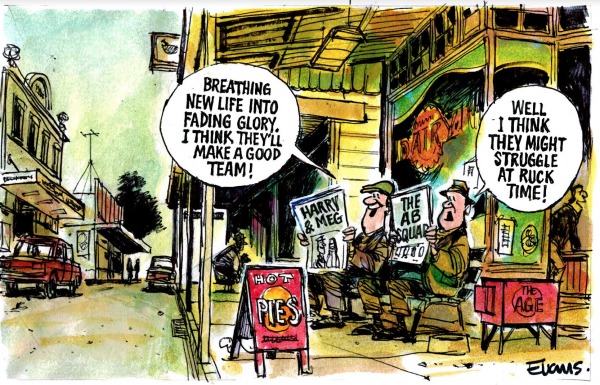 L0L0L0L !…. Love it,… two old blokes outside some West Coast town reading the paper, complete with the HOT PIES sign, totally speaking past one another…