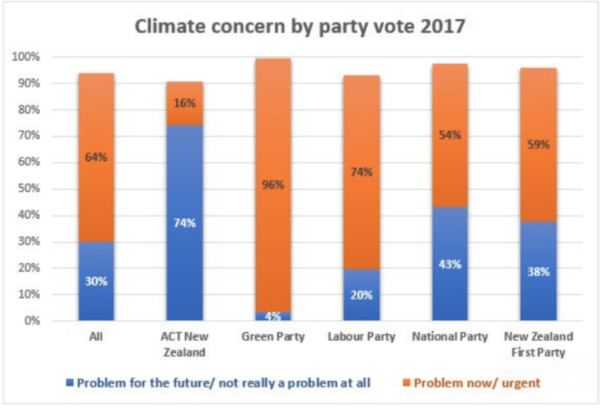 “If we look at a Party break down from 2017, we see that it is National Party voters who are the greatest total number of voters who don’t see climate change as a problem, we need to all work together to challenge lazy claims and ill thought out denial”.