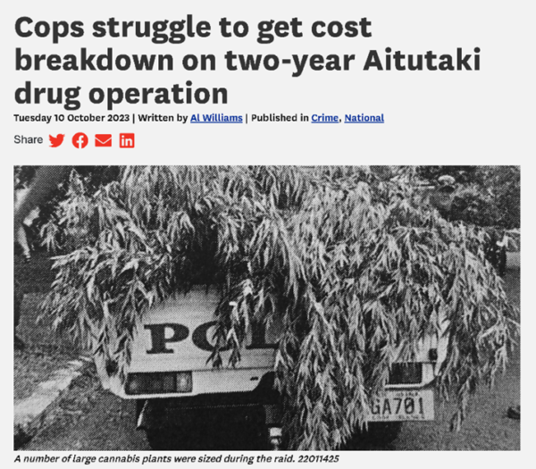 He pointed out police in the Cooks continue to hunt cannabis growers including this lengthy two-year Aitutaki investigation which may have targeted medicinal cannabis distributors.