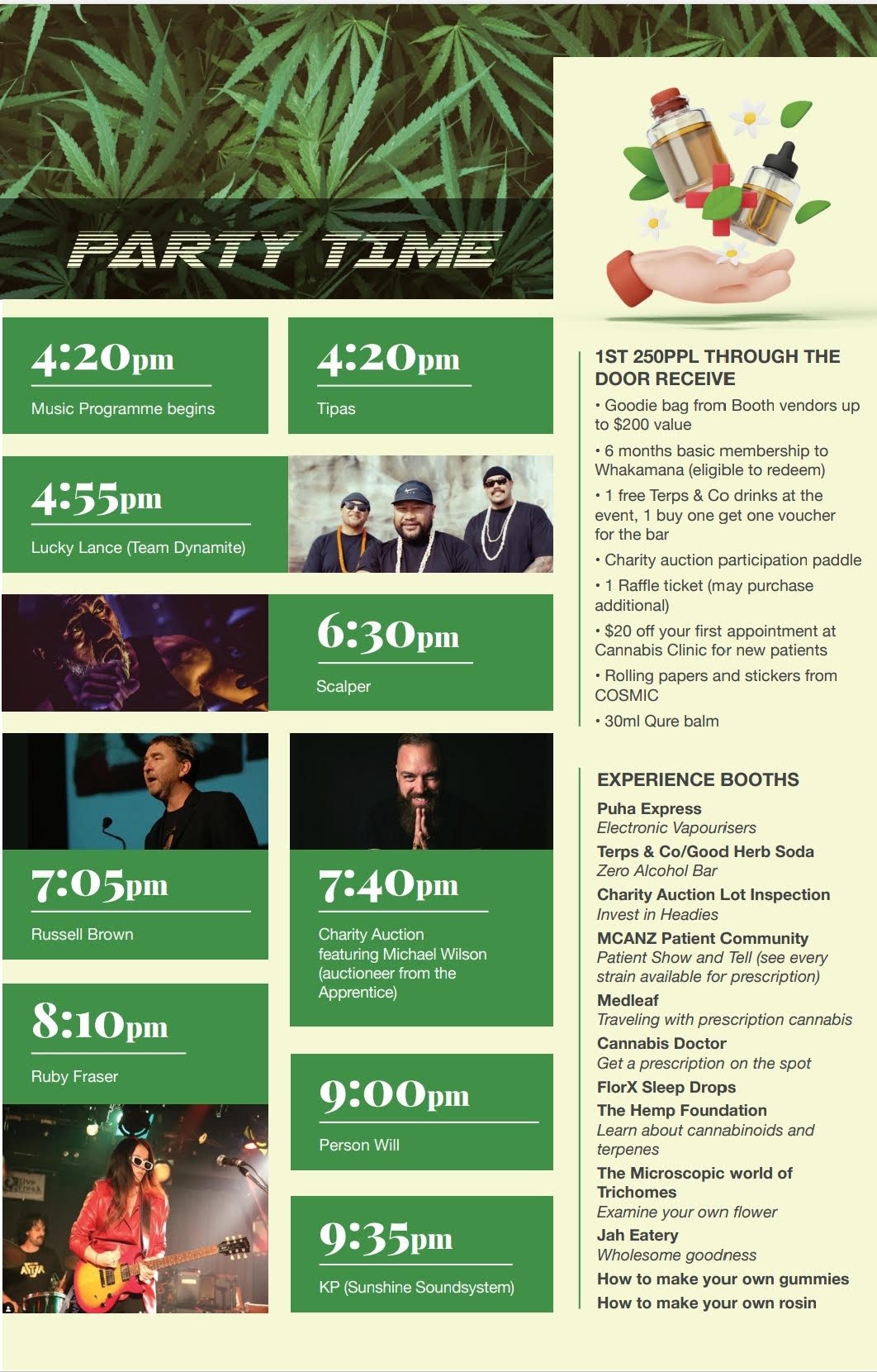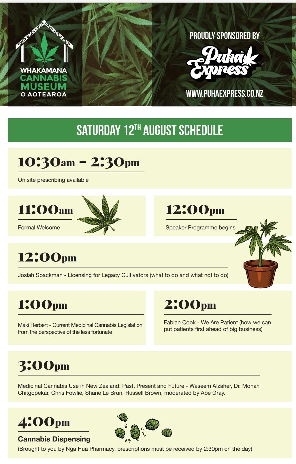 - Medicinal Cannabis Expo & Gala fundraiser for the cannabis museum 12 August at Hopetoun Alpha, Beresford Street, Auckland, followed by a public open day on 13 August. Tickets for both at Cosmic Ticketing.