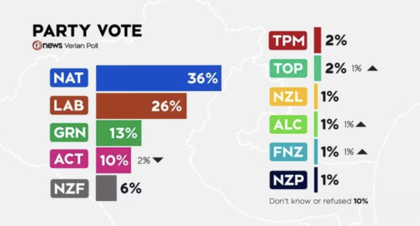 Party vote for the 1News Verian poll on October 4 (Source: 1News)