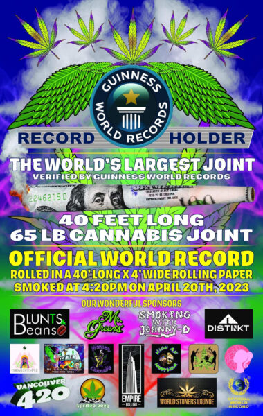 NZ is first on the dateline, so we’re kicking things off, then 20 past every hour we ‘pass to the left’ as the next time zone hits 4:20. In Vancouver, Canada, they are attempting a Guinness World Record with a 65 pound, 40 foot, monster (at 11:20am Friday NZT if you want to join along!).