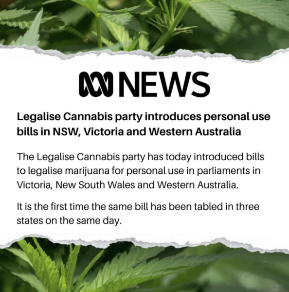 Legalise Cannabis Party introduces Bills in West Australia, Victoria and New South Wales