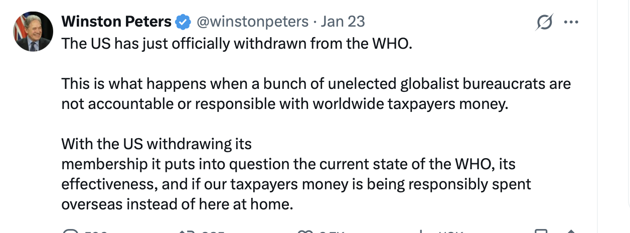 …for the Foreign Minister of NZ to attack the WHO to excite his redneck cracker electorate is jaw dropping.