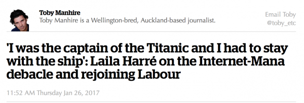 Bang on ! … I read that article in the NZ Herald ,… kept waiting for the real McCoy to emerge – instead all we got was diversionary slop… no offense to Laila – wonderful politician .