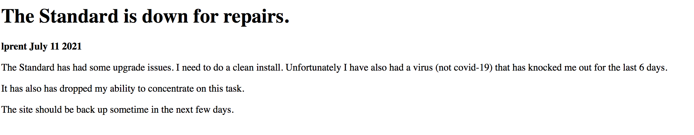 I have read The Standard is down so maintenance and repairs can be carried out. Also Lyn has not been well, but is working on getting the site up and running again in a few days.