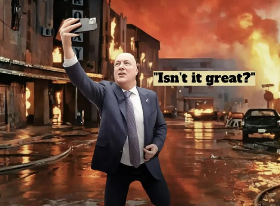 1 – This is the exact same right wing talking point used in Amerika every single time there is a gun shooting with Republicans and pro gun nutters criticising any response that demands actual action beyond ‘thoughts and prayers’. People protesting at the PM touring a disaster site enflamed by climate change when he has cut the Climate Funds, cut environmental protections and cut public transport are righteous to be furious with him!