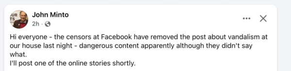 In a really weird move, Facebook have removed John Minto’s own Facebook story pin him being attacked…