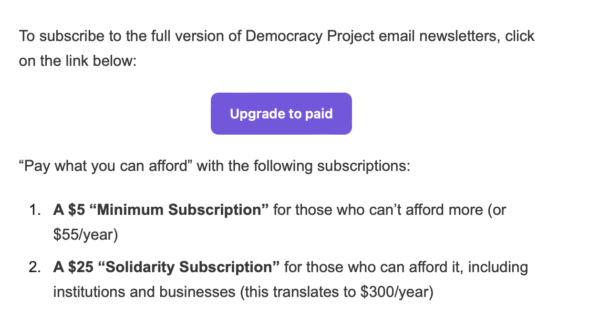 There are many good columnists on substack who are all asking for subscriptions. However while many of us might want to peruse twenty or so opinions, few of us can afford to subscribe between $200 and $400 a month to do so. I subscribe to only one substack column and it was really a chance decision in favour of a very competent journalist who had been crucified by the New Zealand state and media. I have also given one-off financial support to other journalistic collectives but I would want to read more widely. The journalists will have to come up with a new model or they will all end up talking exclusively to a narrow and reasonably affluent group of supporters.