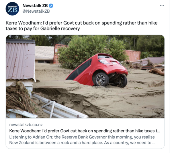 Then there was this extra hot take regarding any suggestion that the rich are taxed for rebuilding from a cyclone ZB didn’t even believe…