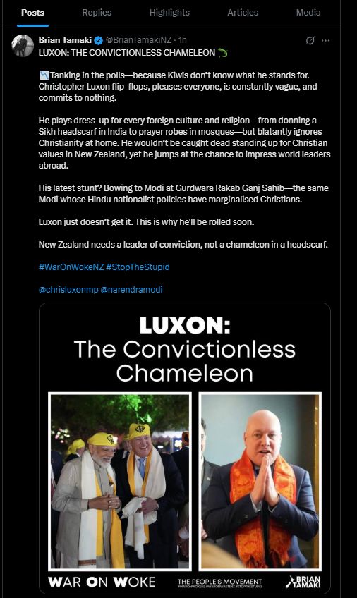 Backlash at inflammatory Brian Tamaki post about Christopher Luxon’s India trip