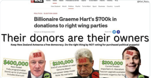 Isn’t it amazing – da Māoris is destroying democracy with their corruption, yet at the top table, the Rich place their donors interests above the common good, hide it, get paid and that’s all fine and dandy?