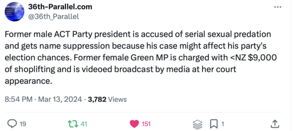 Paul Buchanan has just posted a piece on how the justice system and media have for overtly political reasons suppressed the identity of a right-wing political figure charged much more serious criminal offending than Ms Ghahraman