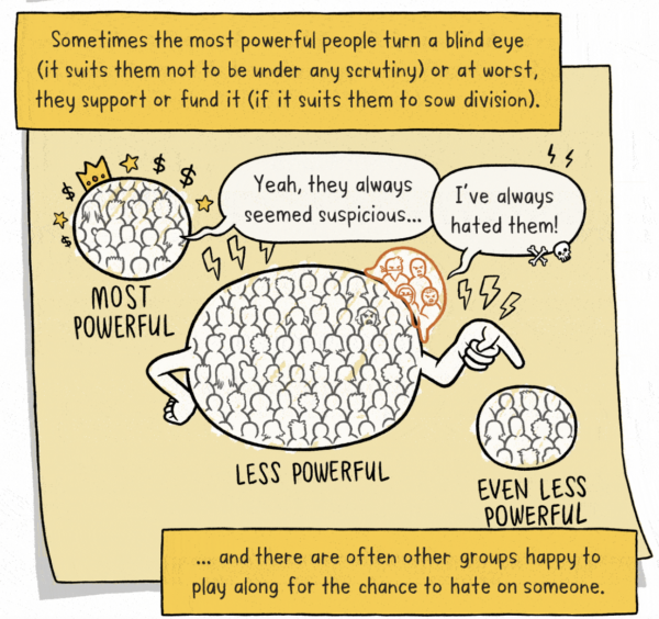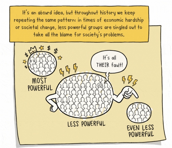 So far so good, yes, scapegoats have been used in human society since day dot. The desire to blame all of the community woes on one group of people is a cheap and easy means of glossing over deeper issues and it’s a well worn path throughout human history.