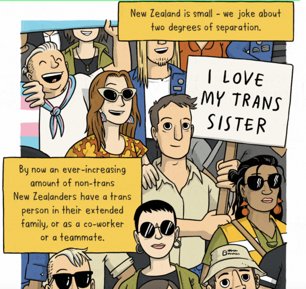 The vast majority of Kiwis have no problem with the trans community, and will of course use whatever pronoun they chose and acknowledge whatever identity they want to be known as because that’s the basic courtesy we offer each other in a liberal progressive democracy.