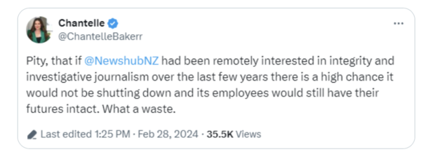 Her shrug and claim that this is the market working misunderstands the enormity of what is happening here! Here argument that no one watches TV misunderstands that all of Newshub’s journalism features online and influences well beyond the tV screen in the line room!