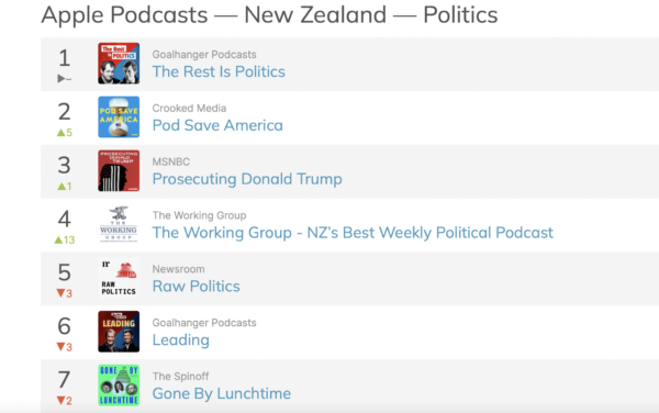 This week The Working Group, (a political podcast with NO NZ on Air funding) beat the NZ on Air funded ones…