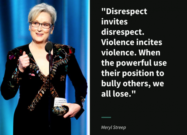 Meryl Streep’s powerful speech at the Golden Globes where she was awarded the Cecil B. DeMille Award hinged on an event during last years election that shocked many.