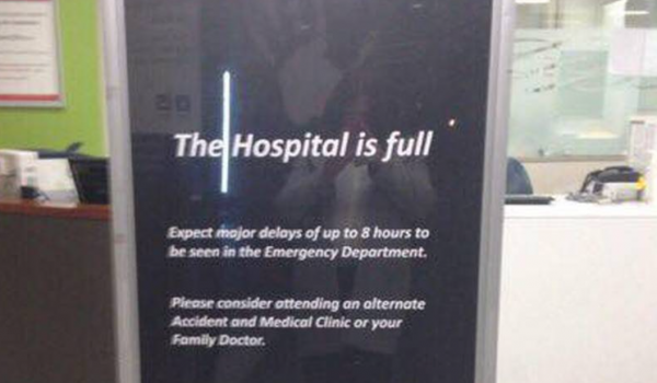 “The Hospital is full,” it stated. “Expect major delays of up to 8 hours to be seen in the Emergency department.