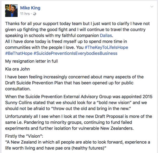 Mike King quits suicide-prevention panel & claims real suicide rate is twice as high as officials say