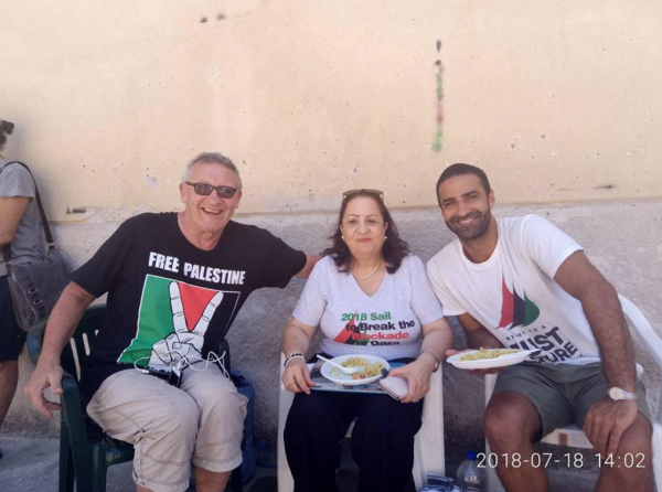 The Ambassador from Palestine to Italy Dr Mai Alkaila came to visit July 18 during our training session to express solidarity and support. There was an unplanned and tearful reunion with Dr Swee Ang, a Consultant Orthopaedic Surgeon; author of From Beirut to Jerusalem and the ships doctor. Dr Ang’s journey with Palestine began as a volunteer surgeon in Gaza Hospital in Beirut’s Sabra Shatila Palestinian refugee camp in 1982. About 3 weeks after her arrival, more than three thousand of them were massacred. These events traumatised the young surgeon and Dr Ang describes how the love and generosity of the Palestinian people helped bring her back to a purposeful meaningful life – but now one forever intertwined with the fate of the Palestinian people. (From Beirut to Jerusalem can be downloaded here.). Dr Ang served in Gaza in 1988-89 during the first Intifada and again in 2009 after the Israeli invasion of Gaza in December 2008 that left thousands of casualties.