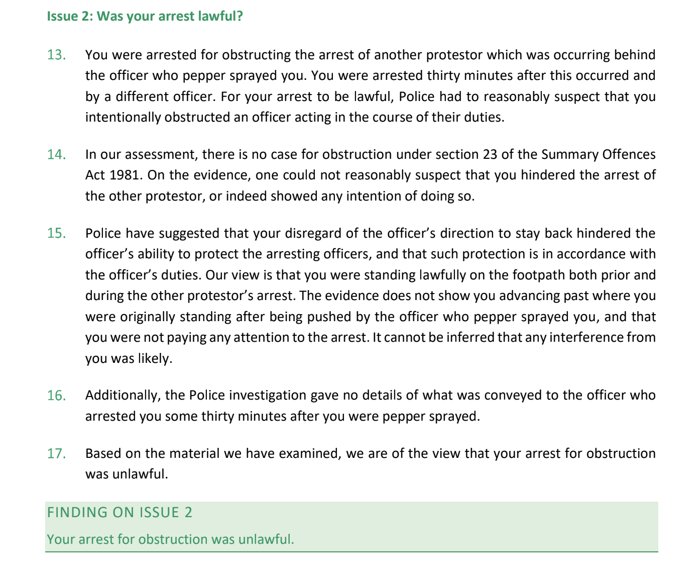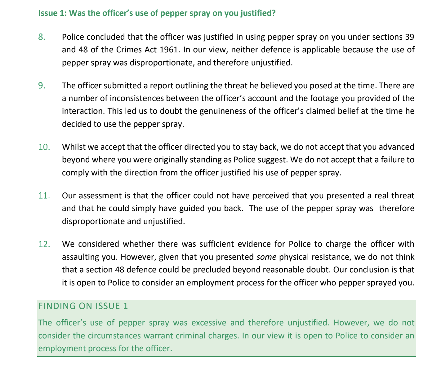 But the IPCA has found both the pepper-spraying and the arrest itself were unlawful.