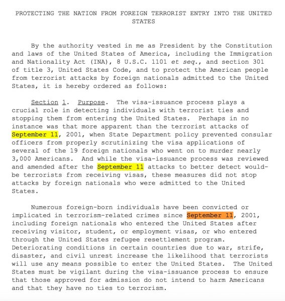 … you’ll all not that the 9/11 hijackers were from Egypt, Saudi Arabia, UAE & Lebanon. None of those countries have been listed in the ban.