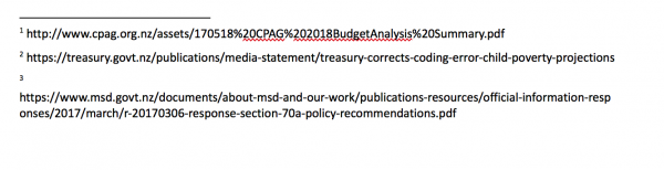 In other words 100,000 children will remain in poverty even with this $1 billion increase. Most likely amongst this 100,000 are the 17,000 children of women receiving a benefit who refuse to name the father of their child and so face a sanction of up to $28 per week sanction under Section 70A of the Social Security Act. Despite promises in Parliament in December 2017 by Social Development Minister Carmel Sepuloni that her Government would remove these sanctions, the 2018 Budget failed to do so. The expected cost of such a removal is $25 million annually.