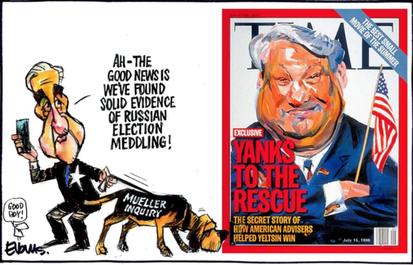 If you want a good story about one country meddling in the election affairs of another, look up the 15 July 1996 Time magazine story titled “Yanks to the Rescue” and read how the US engineered Yeltsin’s election. And thereby, ironically, that too of Putin!