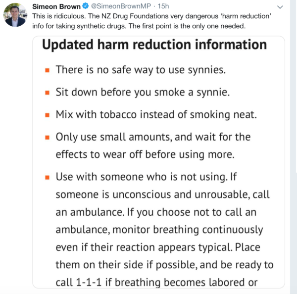 …but Simeon has doubled down on his shit stain status and bewilderingly attacked the Drug Foundation for trying to provide advice to stop the massive death rate that synthetics are causing…