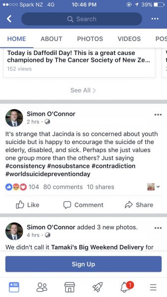 Bill has of course come out and tsk tsked his MP just as he did when Joyce lied about Labour’s budget hole that only Steve can see and just as he did when Paula Bennett promised to strangle off civil rights. but see how the National Party first instinct is to erode human rights, lie about their opposition and take a social issue like suicide and attempt to weaponise it for the election.
