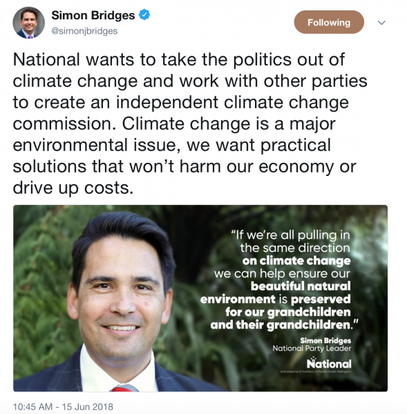 You can’t ‘take the politics’ out of climate change – it’s no longer a scientific question as to whether or not it’s happening, inaction is now a political problem and seeing as your party has the largest number of climate deniers in NZ, that makes it YOUR problem!