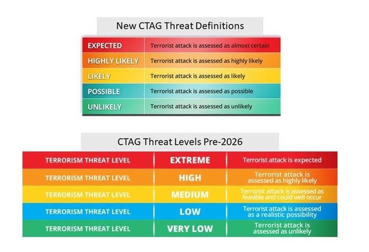 The Combined Threat Assessment Group (CTAG) has adopted new language to define the national terrorism threat level. This change was signalled by NZSIS in 2024.