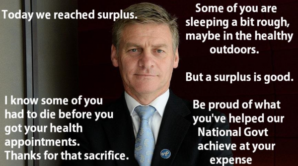 Additional to my earlier posting: If there is a ‘surplus’ in NZ then why is not this government giving NZers a liveable wage? Oh right it’s because the Double Dipping MP for Dipton has said NZ cannot afford to give NZers a liveable wage.