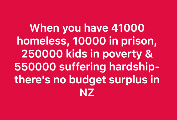 The words “Budget Surplus” is just that i.e words. They, the words, do not contain any substance. They will not help the low paid NZers and sure as Hell they will mean diddly squat to anyone living in poverty.