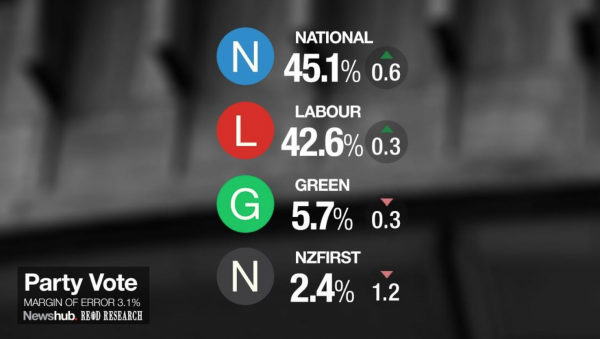 National is only getting in the 40s because there is no one else for right wingers to vote for – NZ First has gone with Labour and not even the most extreme right wingers take Act seriously any more.