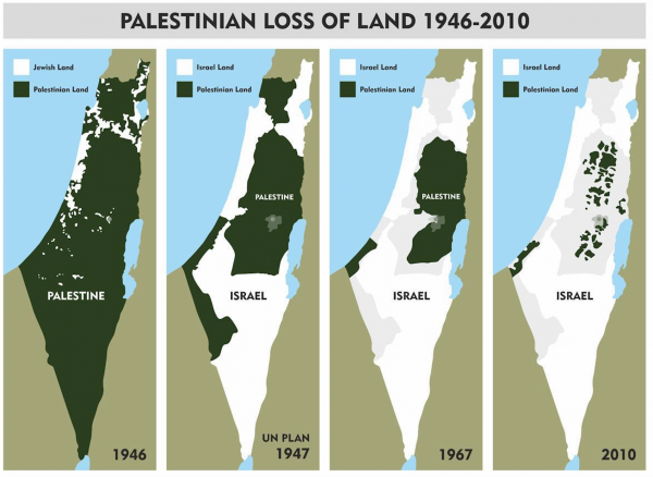 I think your map deliberately distorts history. After the wars of 1947/48, Egypt occupied the Gaza strip and Jordan occupied the West Bank. Neither of those two countries made any attempt to transfer this land to Palestinian authorities. In fact Jordan annexed the West Bank (an act recognised only by Pakistan and the UK). True, Israel invaded both those areas in 1967 but before then it was Egypt and Jordan occupied with little support for the Palestinians.